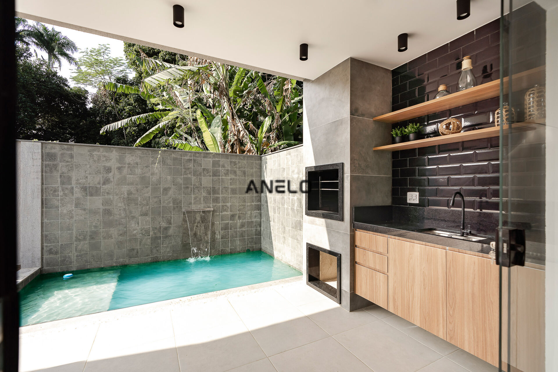 Casa em construção com sala ampla dividida em 2 ambientes, lavabo, cozinha em conceito aberto proporcionando integração entre os ambientes e a área gourmet com piscina.